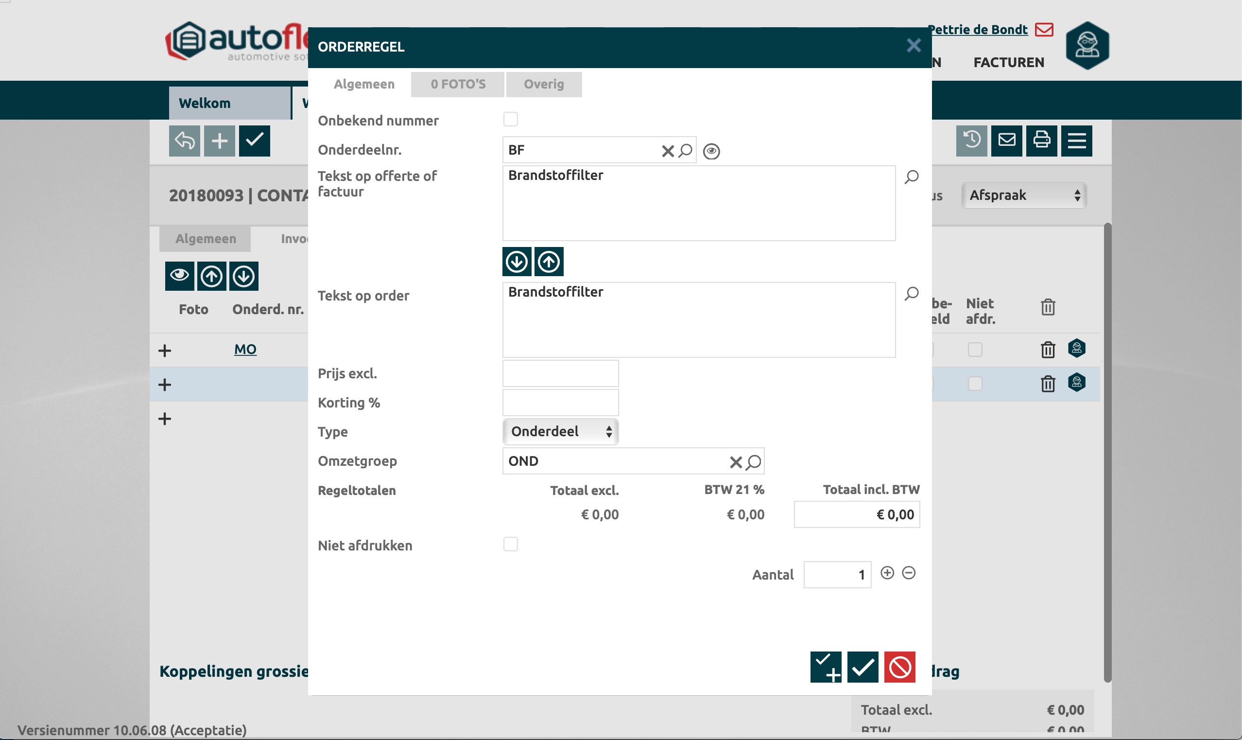 In de tab Invoer wordt direct een orderregel getoond. Met Ok+ voeg je de volgende regel toe Na Ok opent de tab 'Verwerking' |
