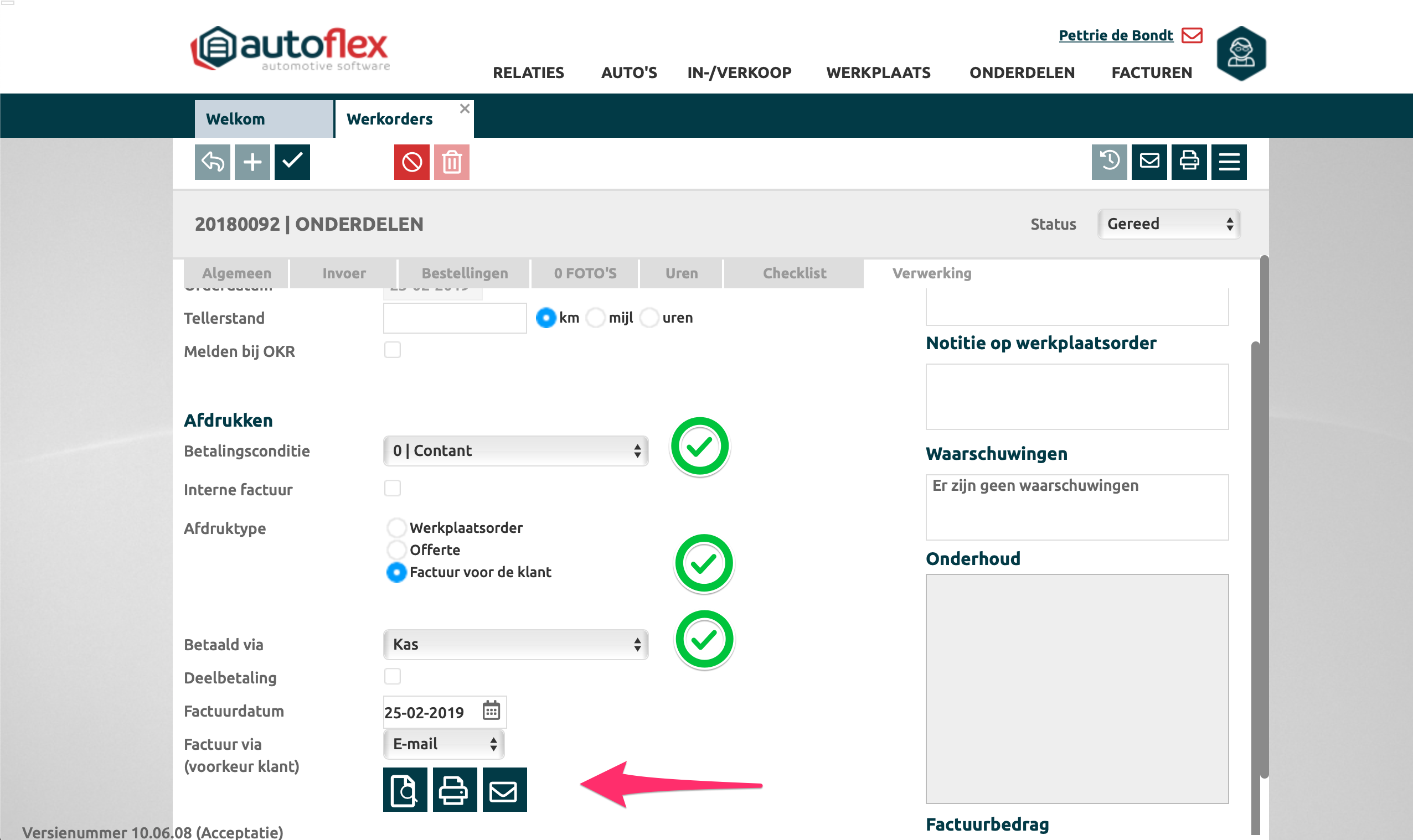 De werkorder wizard is er om snel een Order of een Contant factuur te maken vanuit een werkorder.