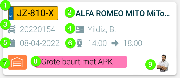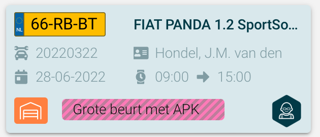 Het workflow scherm geeft in één oogopslag inzicht in de voortgang van de voertuigen binnen de werkplaats. Het scherm is ingedeeld in 5 verschillende statussen, binnen elke status wordt de werkorder getoond als een kaartje met daarop de meest belangrijke informatie.