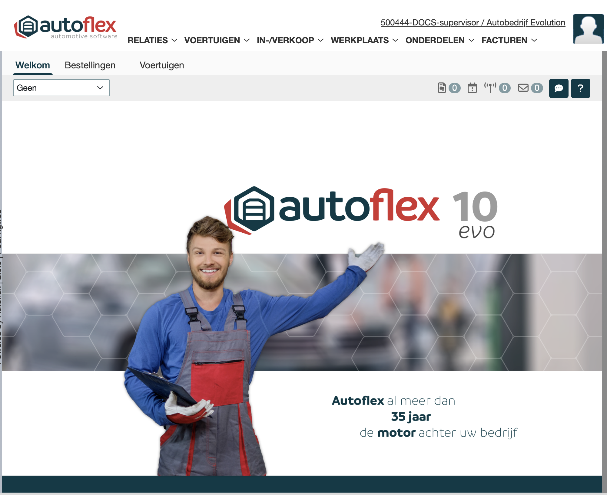 Het startscherm van Autoflex10 is jouw centrale hub: hier begin je elke dag en vanuit hier navigeer je razendsnel naar de onderdelen die je nodig hebt. Denk aan werkorders, planning, facturen of klantgegevens – alles is maar één klik verwijderd.