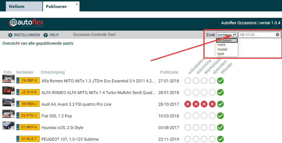 Vanuit Autoflex kun je eenvoudig al je occasions publiceren.