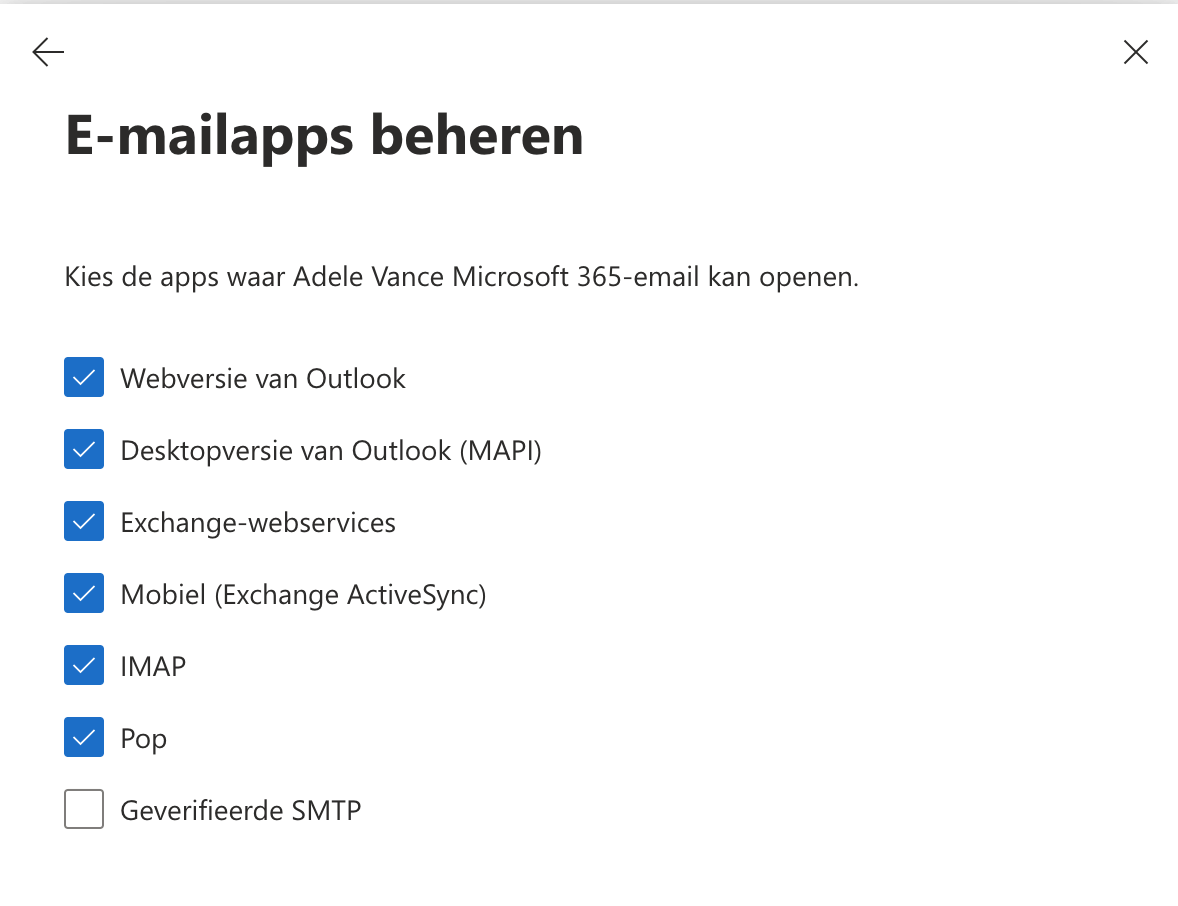 Microsoft maakt het echter wel mogelijk om deze terug aan te zetten (voor alleen SMTP).