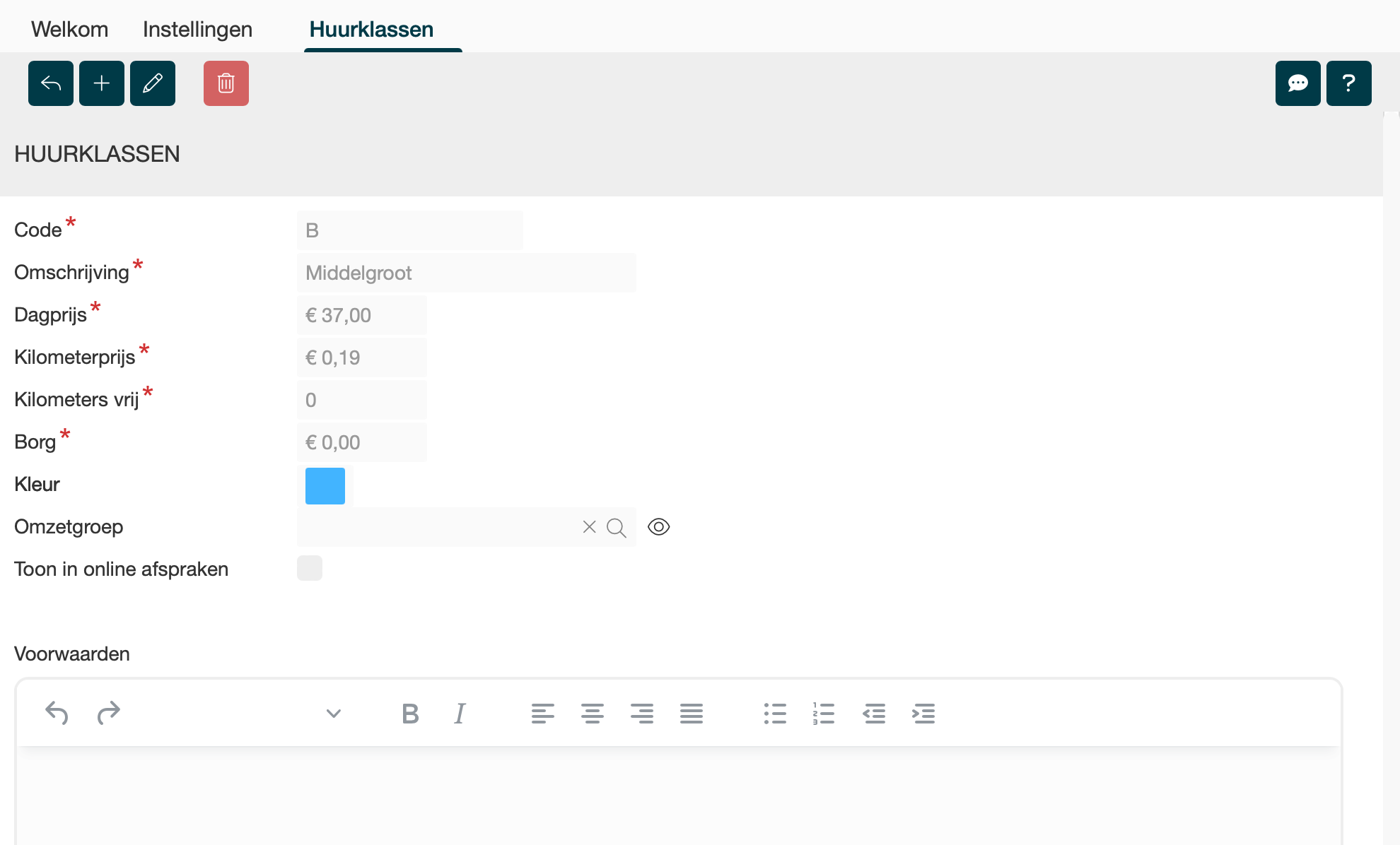 Tonen in Online Appointment = Geef hier aan of de huurklasse ook gebruikt kan worden als groep bij vervangend vervoer in de Online Appointment applicatie