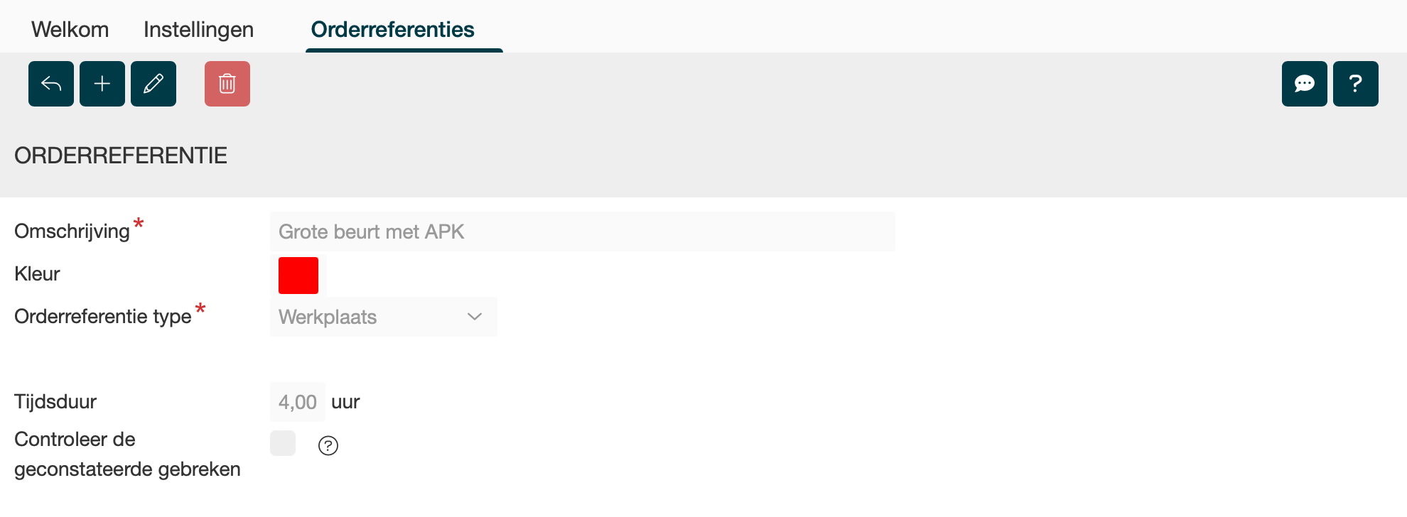 Orderreferentie type = hier geef je aan of deze gebruikt wordt voor de werkplaatsorders of voor orders voor de autoverkoop