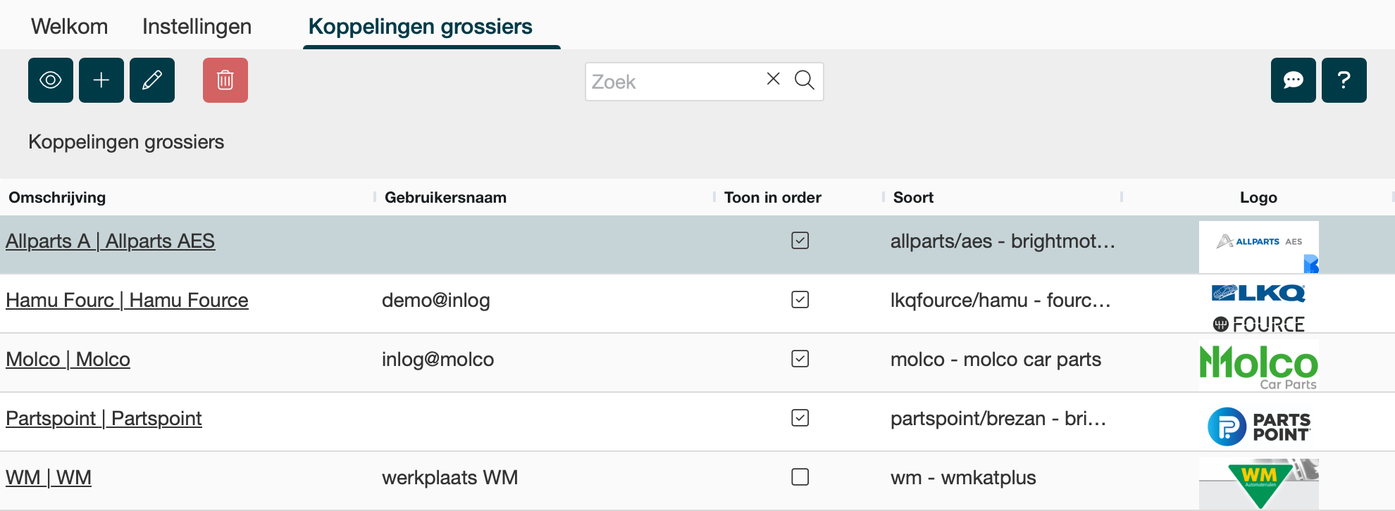 Ga naar Profielicoon / Instellingen / (tabblad) Beheer / Koppelingen grossiers.