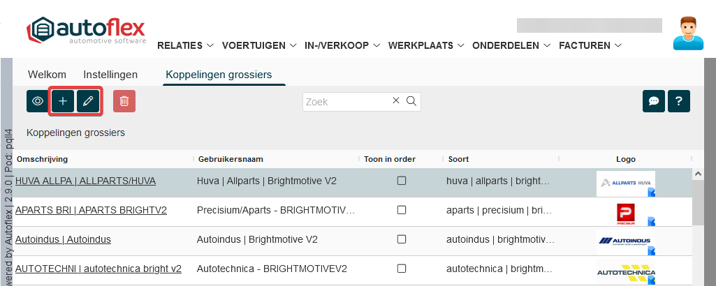 Staat de grossier hier niet tussen? Laat dan de vertegenwoordiger van de Grossier contact opnemen met Autoflex om deze Grossier toe te laten voegen aan het Autoflex pakket.