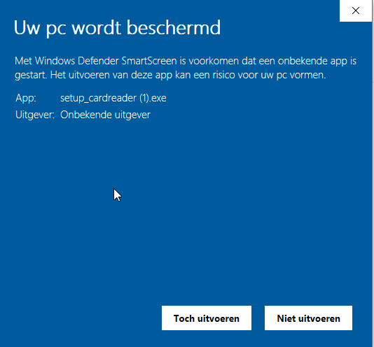 1B. Als je Windows 10 hebt, dan krijg je de volgende vraag: Uw pc wordt beschermd Kies voor: meer informatie en dan voor Toch uitvoeren |