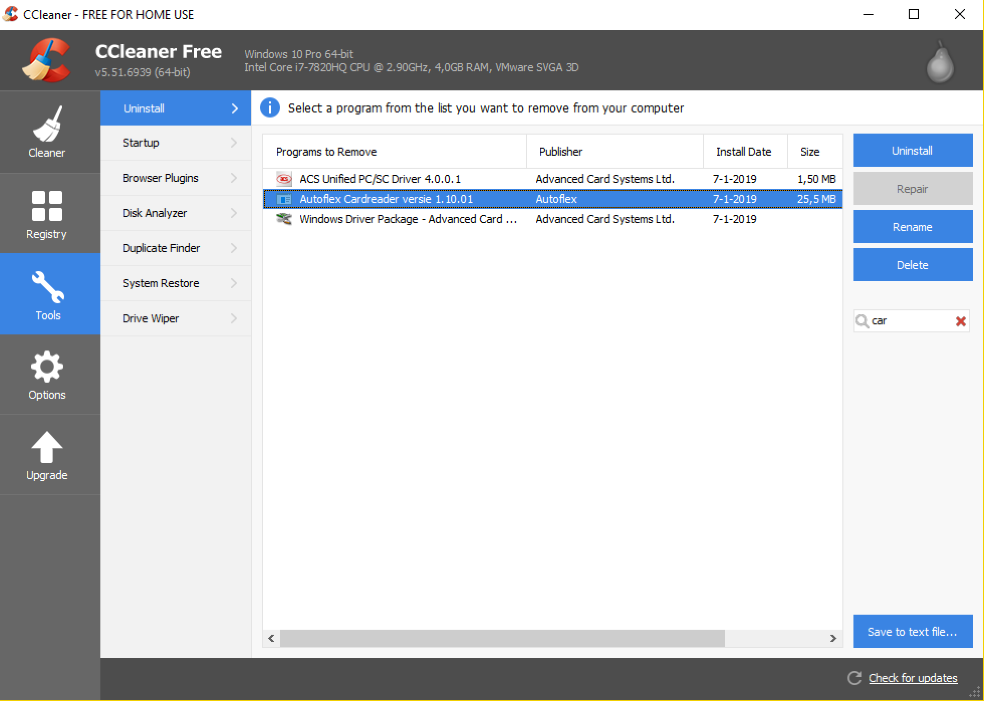 Volg onderstaande stappen om de CardReader en de drivers volledig van het systeem te verwijderen: