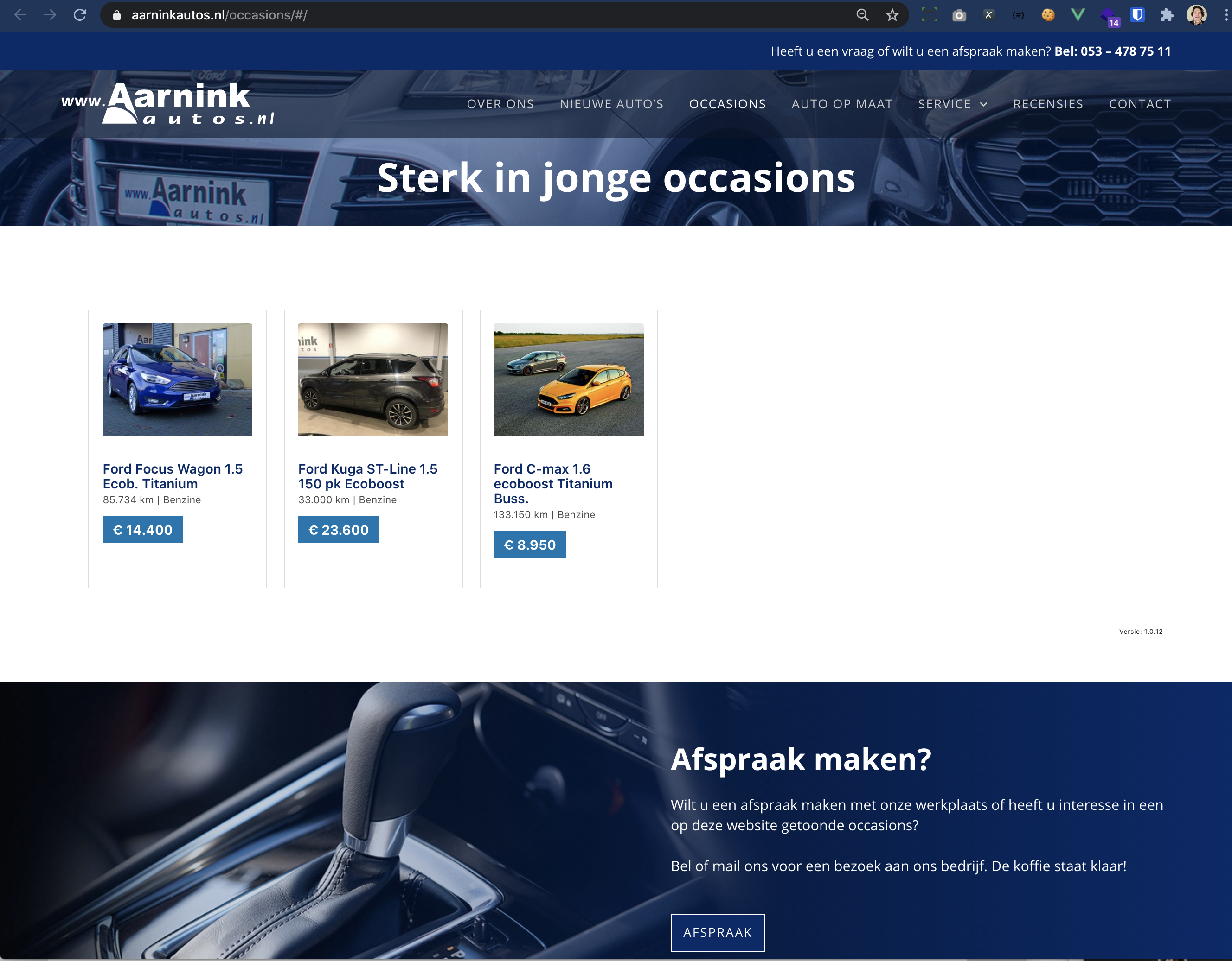 Voorbeeld van een Autoflex klant die PEW heeft gebruikt op zijn eigen website: https://www.aarninkautos.nl/occasions/
