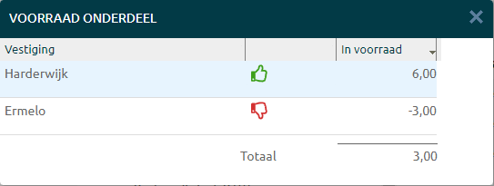 Voorraad van een onderdeel kunnen inzien van alle vestigingen