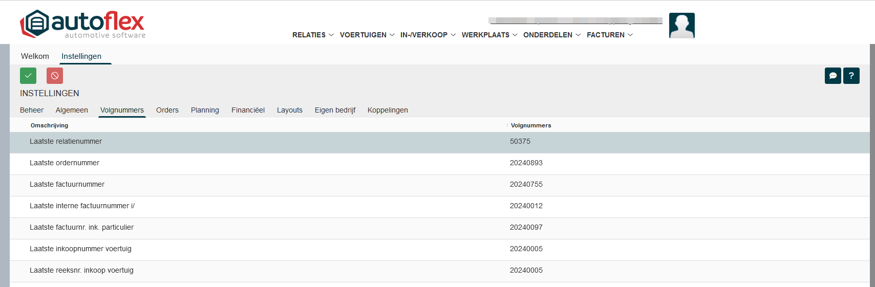 Wil je handmatig de volgnummers aanpassen? Dit kan in de instellingen van Autoflex.