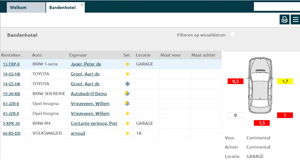 In de module Bandenhotel heb je een overzicht van alle banden van de klanten die zijn opgeslagen op de locatie(s) die zijn ingesteld.