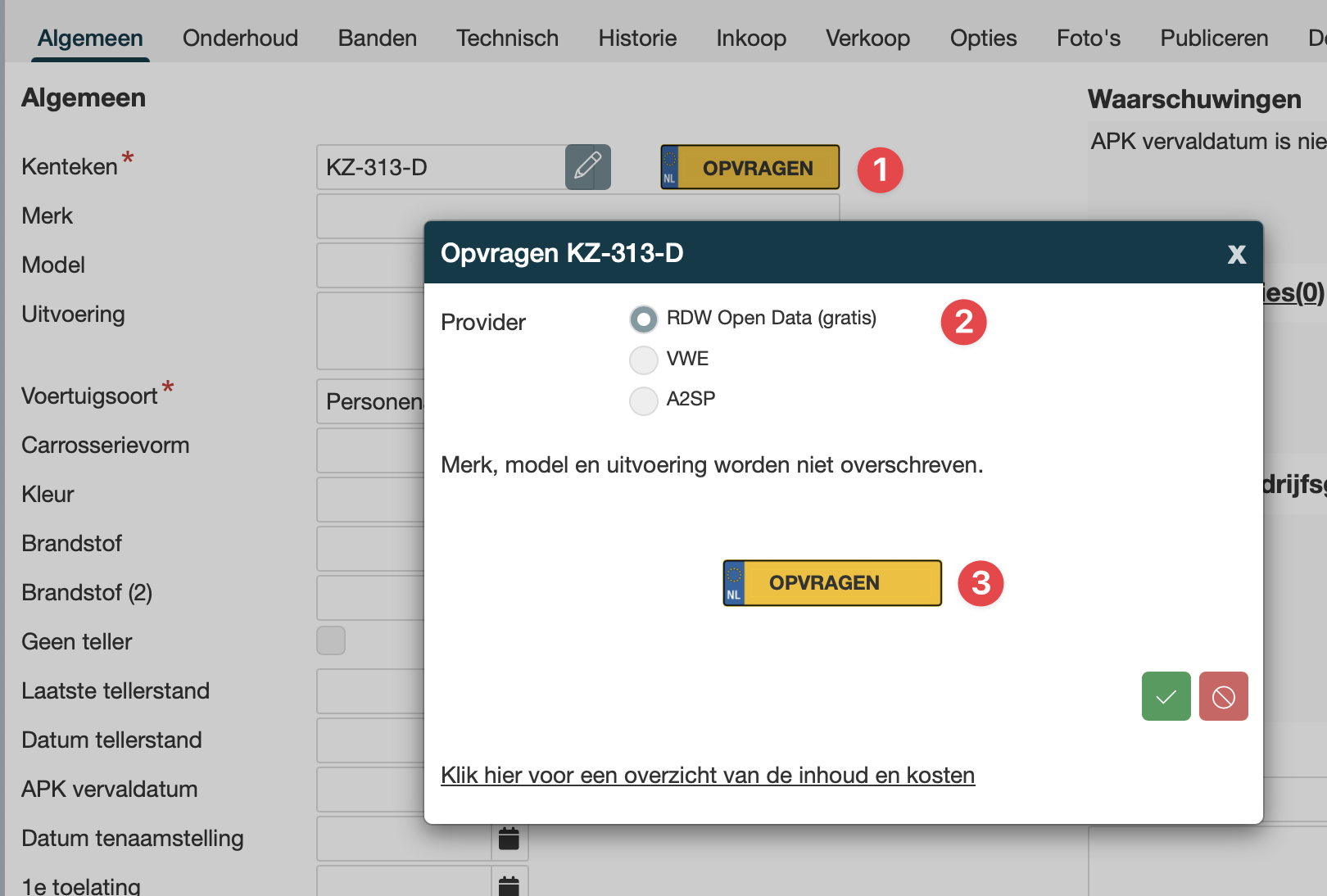 In het volgende scherm kun je kiezen tussen alleen de APK-vervaldatum of alle beschikbare gegevens zoals merk, model, uitvoering etc.