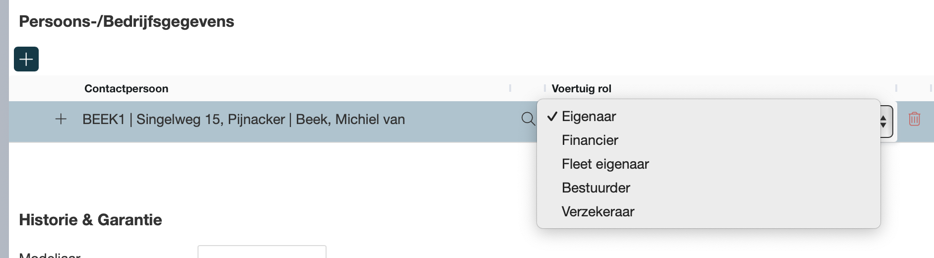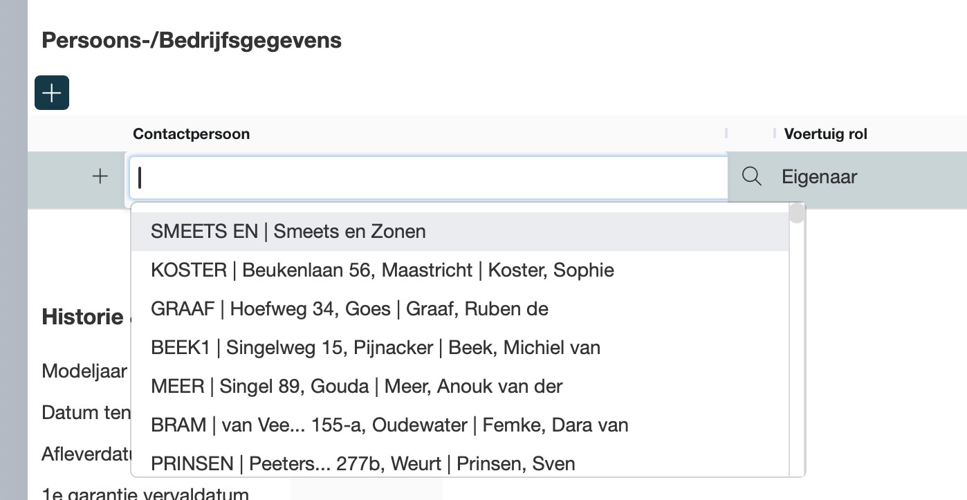 Ga naar je voertuigenlijst en zoek het kenteken op, waaraan je een relatie wilt koppelen.