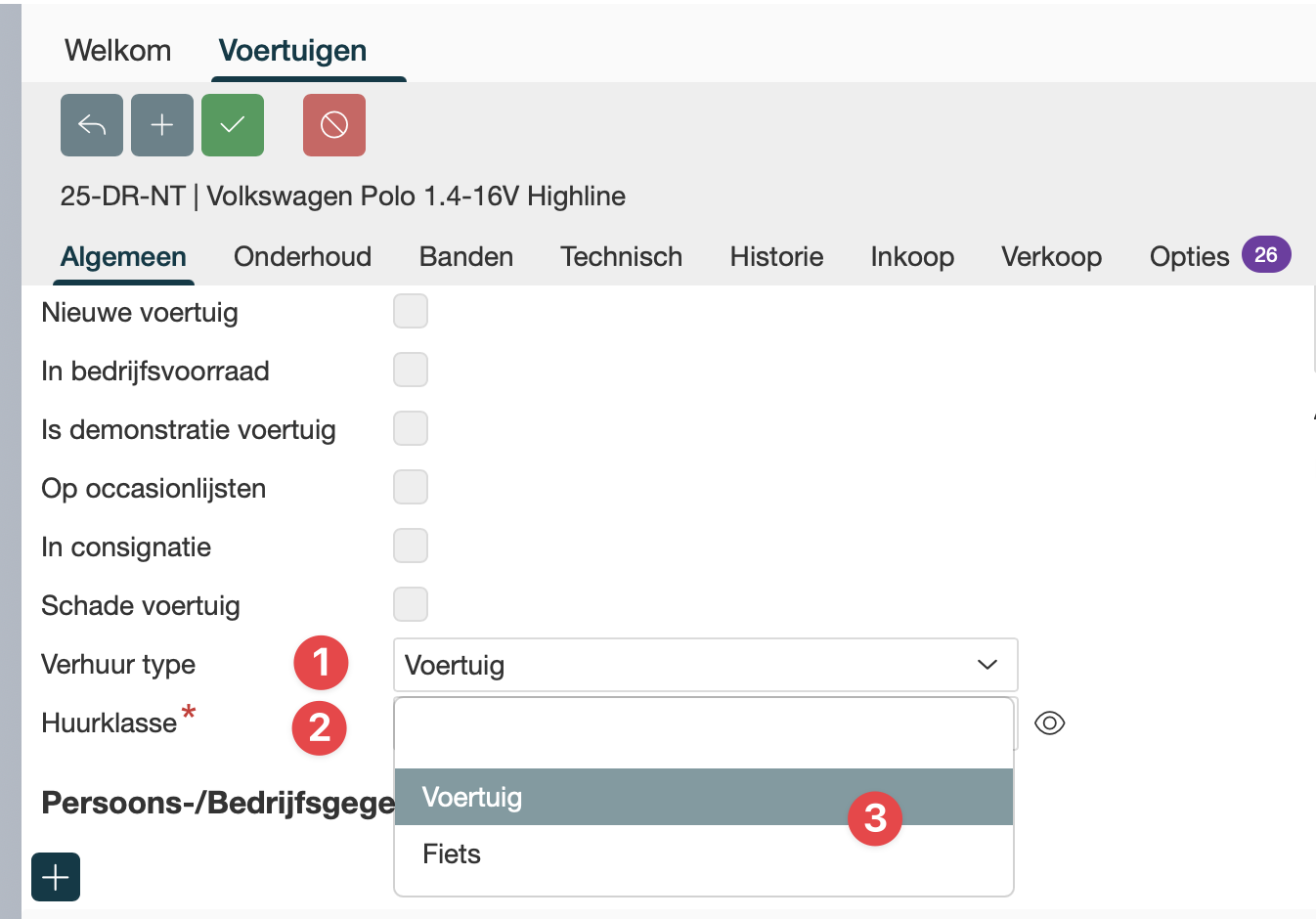 Stap 2: Maak het voertuig een huur/leenvoertuig