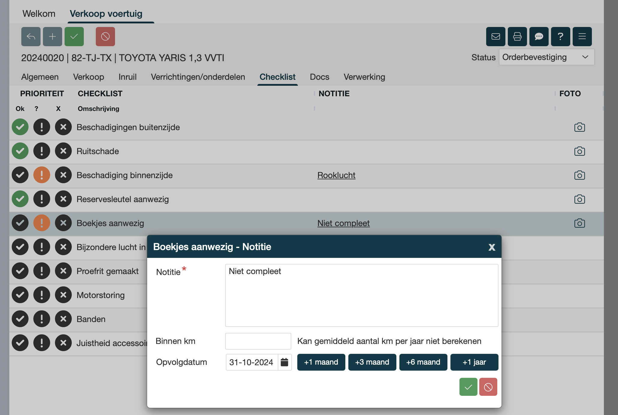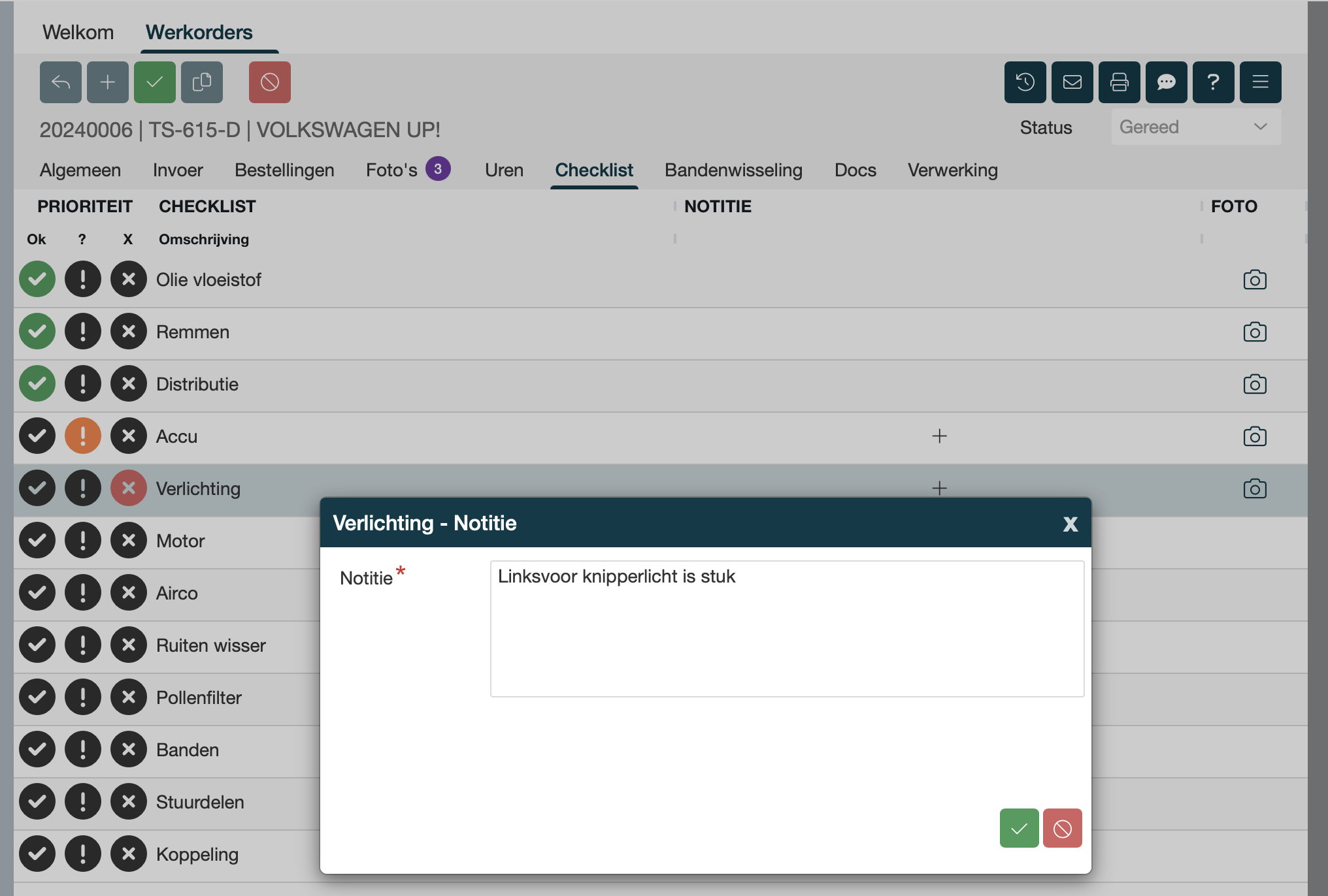 Ook kan je een notitie toevoegen (dit is bij Kruisje verplicht!) en eventueel een foto per checklist item.